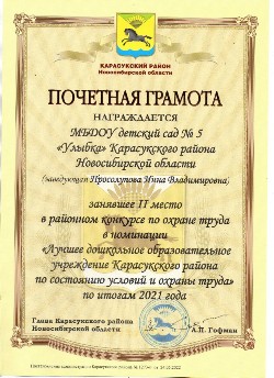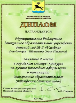 Муниципальное бюджетное дошкольное образовательное учреждение детский сад комбинированного вида № 5 "Улыбка" Карасукского района Новосибирской области